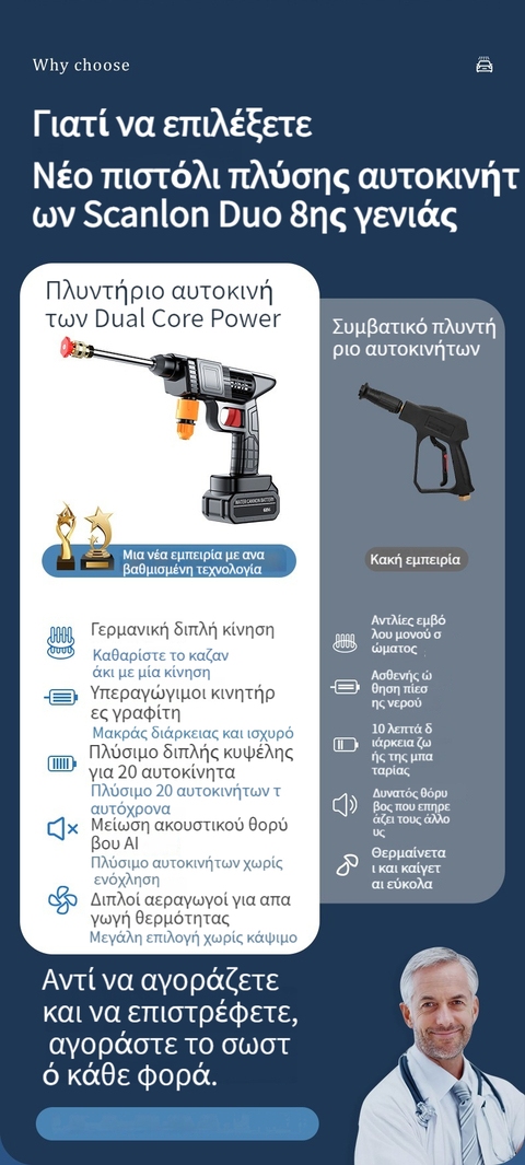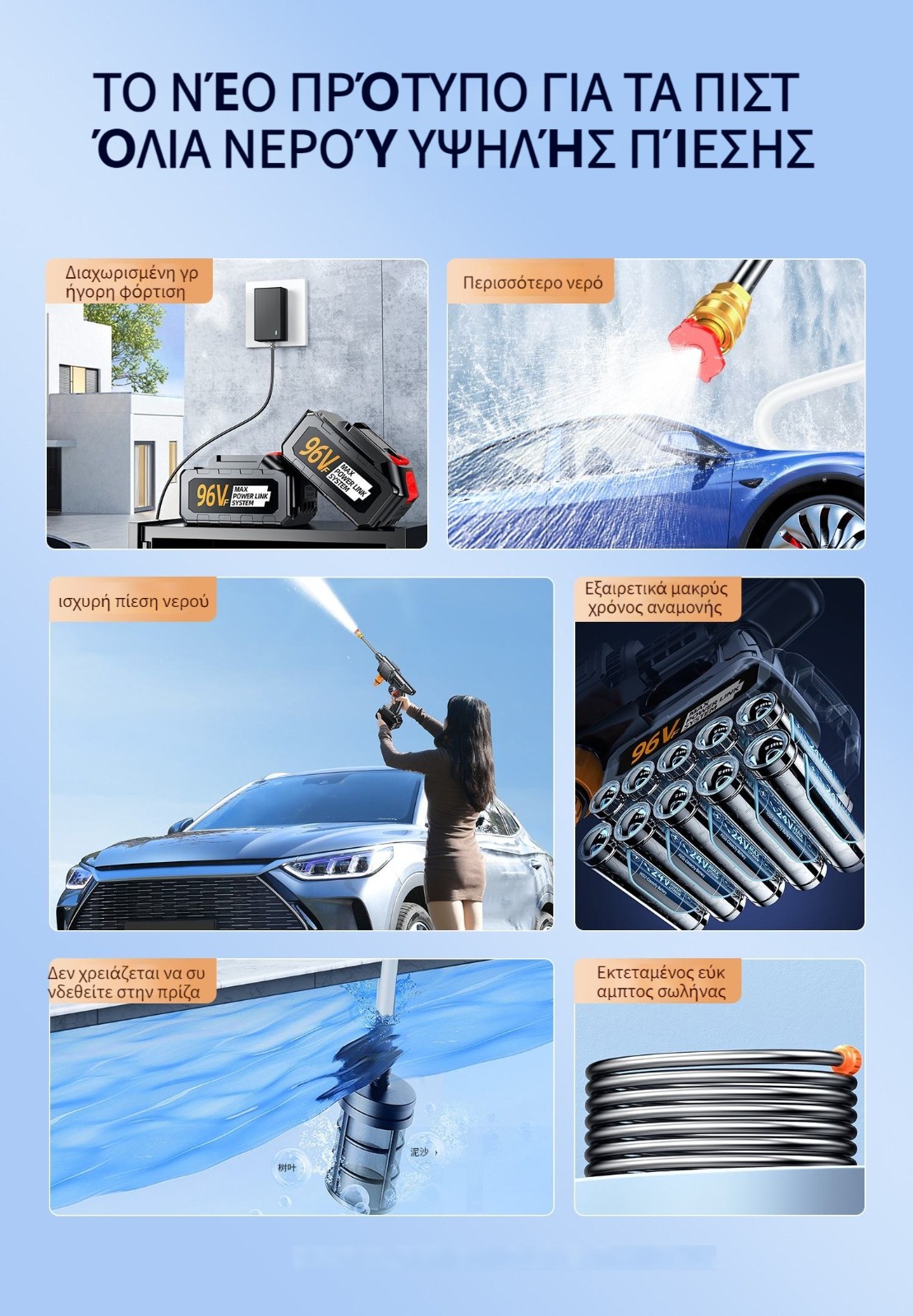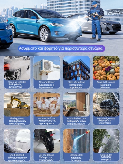 Ασύρματο πλυντήριο αυτοκινήτων στο σπίτι με πιστόλι νερού υψηλής πίεσης καθαρισμός τεχνούργημα φόρτισης αυτοκινήτου, πιάσε μπαταρία λιθίου υψηλής ισχύος ισχυρή ώθηση
